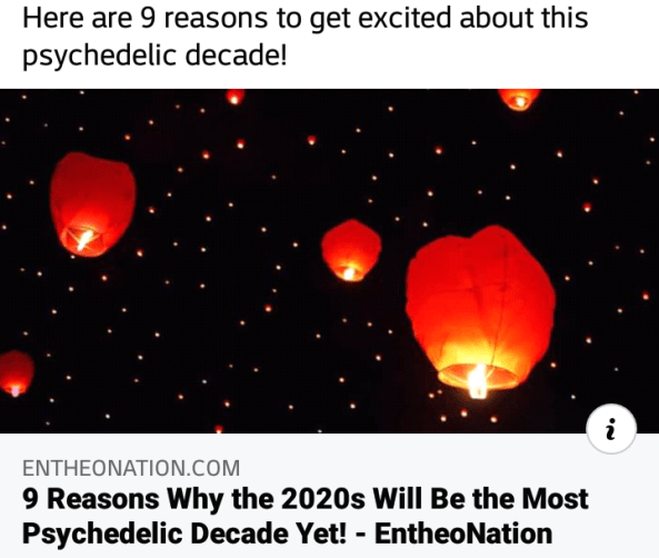 Mar 22 2021 THE PSYCHEDELIC DECADE? If so, it’s off to a bad start. https://entheonation.com/blog/2020s-psychedelic-decade/ Share this: Click to share on X (Opens in new window) X Click to share on Facebook (Opens in new window) Facebook Click to share on Reddit (Opens in new window) Reddit Like Loading...